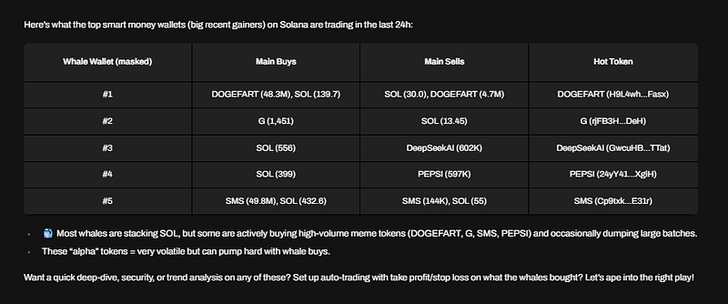 Security checks and wallet tracking are not flashy, but they’re essential. If your strategy is sharp but your safety net is weak, AI can plug that gap and protect your gains, letting you trade with more confidence and less stress.