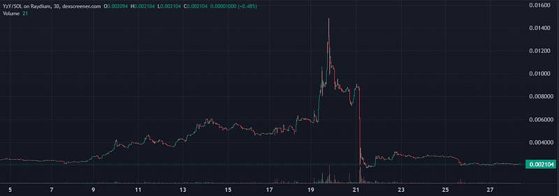 One memorable example was Yeezy Coin ($YZY): Backed by Kanye West, it saw massive amounts of capital as soon as it launched. When I dug in, it turned out to be a coordinated pump by insiders with a high likelihood of a rug pull.