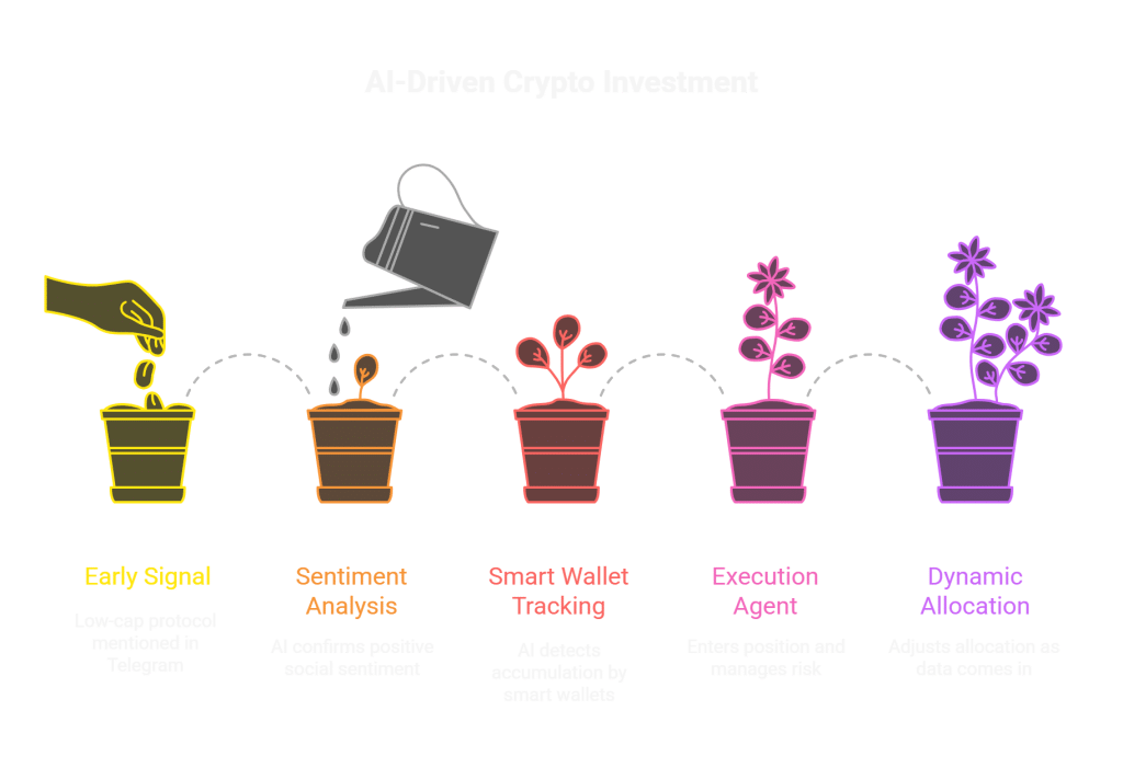 Imagine this: an AI agent picks up early traction around a low-cap protocol that’s being mentioned in Telegram groups. It confirms that smart wallets are accumulating and social sentiment is turning positive. That signal is instantly passed to an execution agent, which enters a position, manages the risk, and adjusts the allocation dynamically as more data comes in.