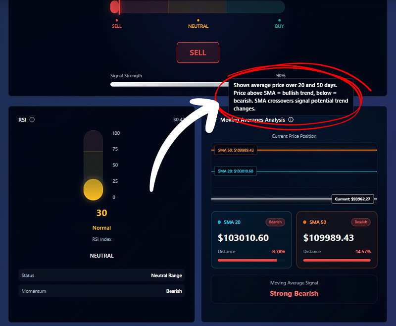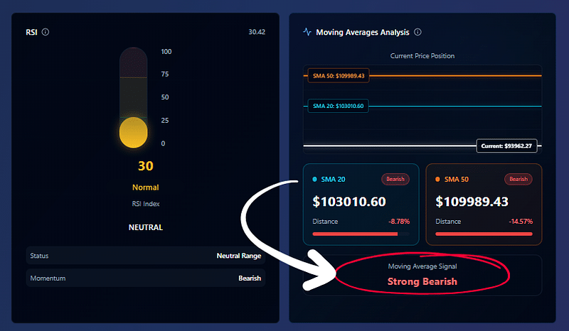 - Trend Metrics: Shows the current direction, slope, and momentum.