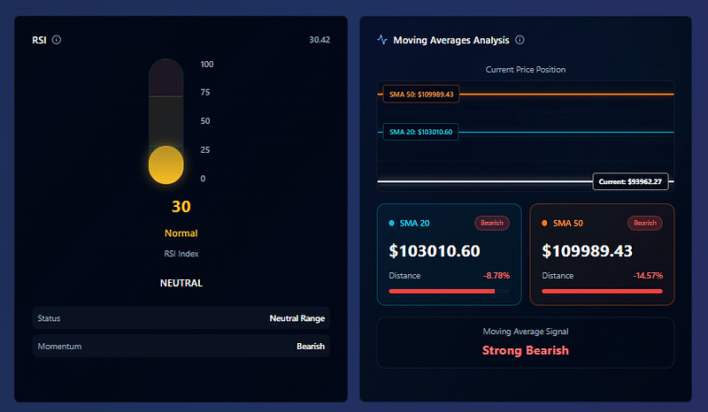 Once selected, the system automatically fetches historical price and volume data. Behind the scenes, it calculates all the core indicators: