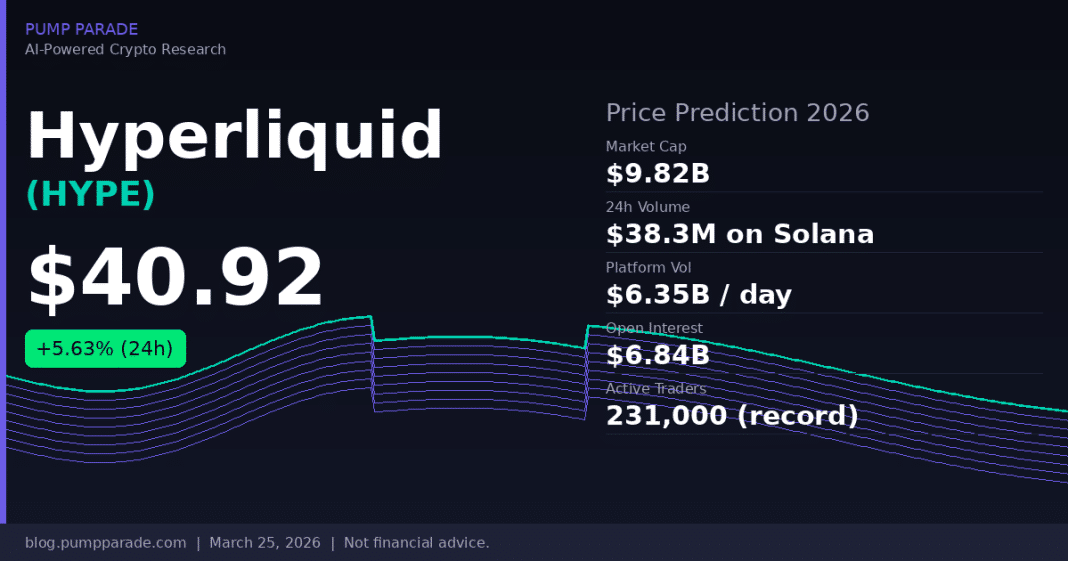 Hyperliquid’s HYPE token is trading at $40.92 as of March 25, 2026 , up 5.63% in 24 hours and more than 100% above its January low of $20. The platform just hit a record 231,000 active perpetual traders. Multiple asset managers have filed for spot HYPE ETFs with the SEC. This isn’t a quiet week for HYPE.